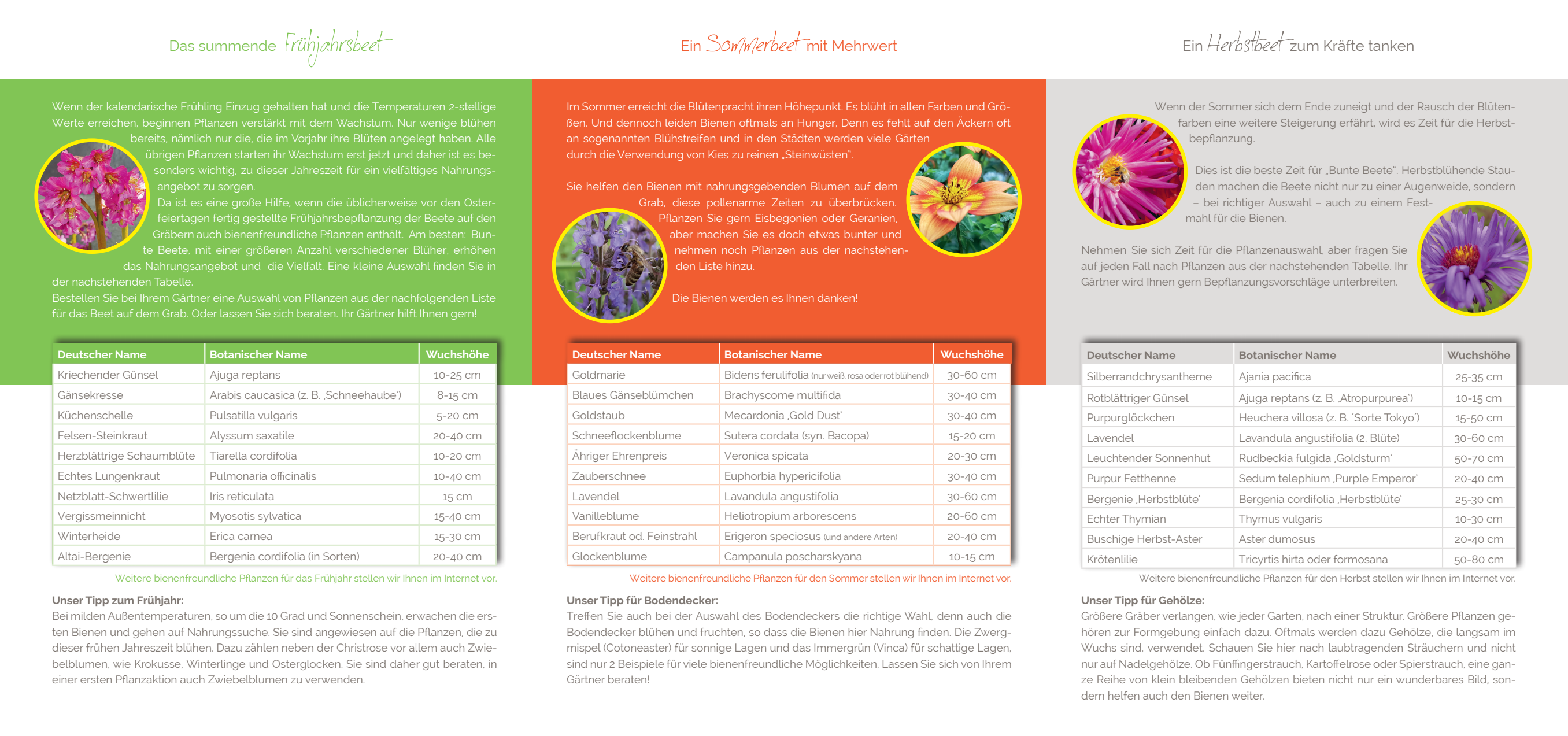 Im Rahmen des Projektes Bienengartenpate wurden Pflanzvorschläge erstellt, wie die bisherigen Wechselbeete bienenfreundlicher bepflanzt werden können. Ein Grab ist nicht nur letzte Ruhestätte; es ist auch ein Ort lebendiger Erinnerung. Angehörige, Freunde und Nachfahren finden sich zu Zwiegesprächen oder stillem Gedenken ein. Doch nicht jedem ist es möglich, sich persönlich um ein Grab zu kümmern.