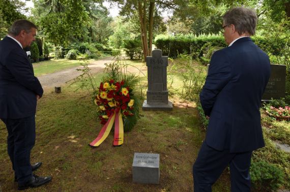 Kaminsky würdigte anlässlich der Kranzniederlegung zugleich den damaligen Oberbürgermeister Bernhard Eberhard, der 1846 den Friedhof anlegen ließ. Er bedauerte, dass das Grab des 1860 verstorbenen Eberhard im Nationalsozialismus abgeräumt worden sei. Umso mehr gebühre es nun auch Eberhard zu gedenken.