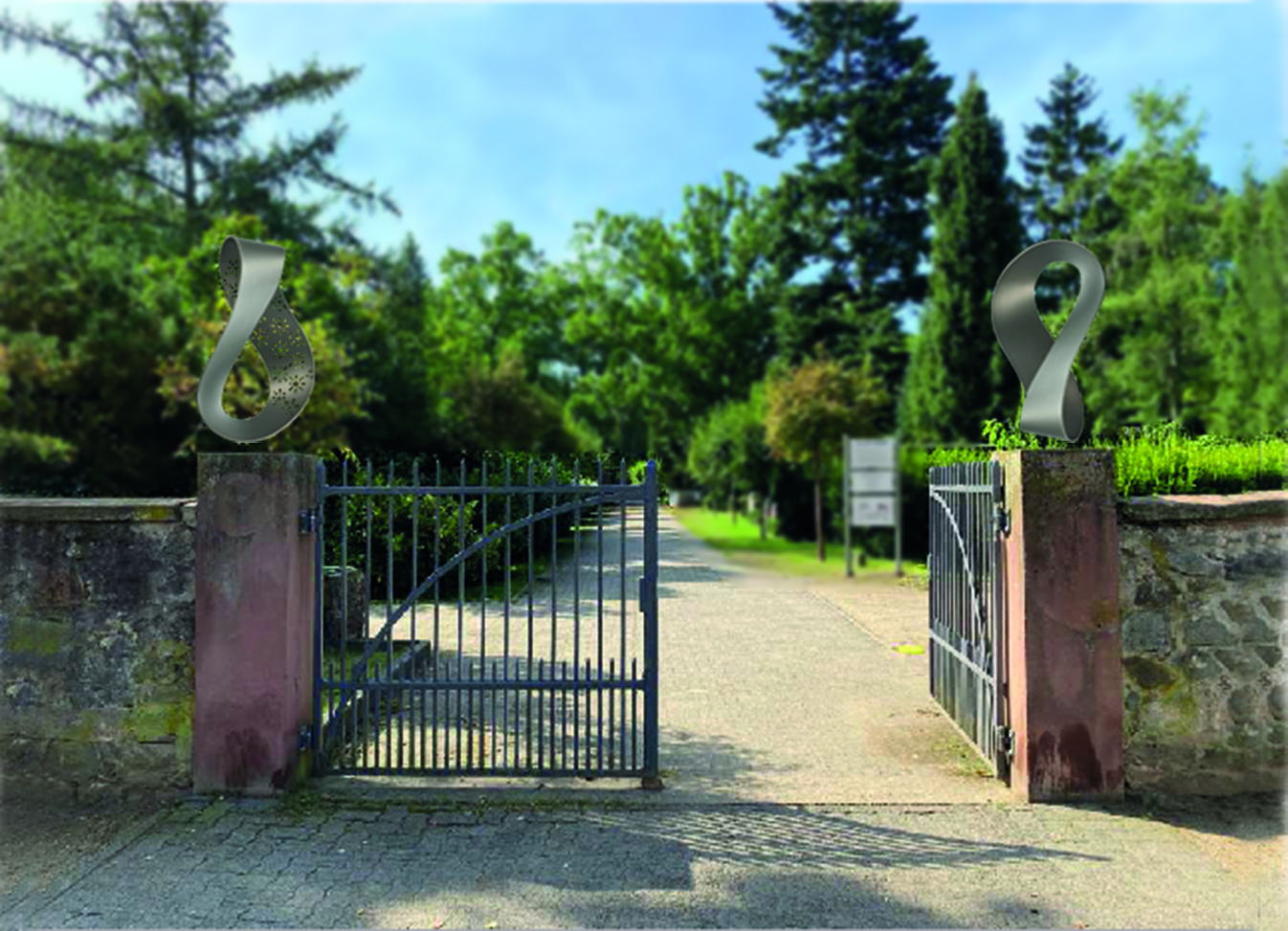 42 Künstlerinnen und Künstler beteiligten sich diesen Sommer an einem von der Stadt Hanau ausgelobten Kunstwettbewerb für die Seiteneingänge des Hanauer Hauptfriedhofs Birkenhainer Straße und Dettinger Straße. Eine Fachjury unter Vorsitz von Stadtrat Thomas Morlock hatte nach eingehender Beratung fünf Künstlerinnen und Künstler zum Modellbau eingeladen und am Ende die Arbeit „Möbiusbänder“ von Hermann Beneke aus Wettin zur Realisierung vorgeschlagen. Das Kunstwerk auf beiden Toren wird nun am 14. November um 14 Uhr der Öffentlichkeit vorgestellt. Der Bildhauer und Mitglieder der Fachjury werden anwesend sein. Treffpunkt ist am Seiteneingang der Birkenhainer Straße zur Querung Richtung der Dettinger Straße.
