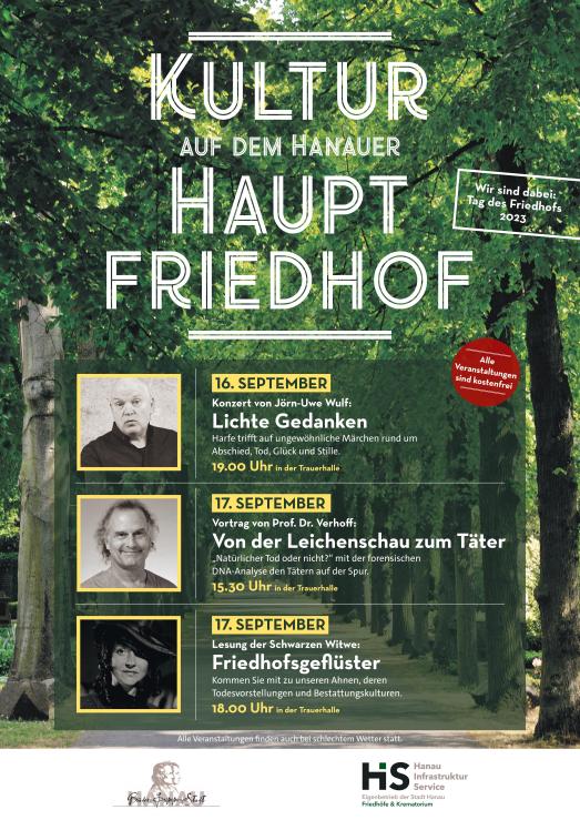 Am dritten September-Wochenende findet der Tag des Friedhofs statt. „Auch die Stadt Hanau beteiligt sich an diesen besonderen Aktionstagen und bietet im Zuge der Reihe „Kultur auf dem Hanauer Hauptfriedhof“ drei besondere Veranstaltungen an“, führt Stadträtin Isabelle Hemsley aus. „Wir möchten auch an diesen beiden Tagen zeigen, dass Friedhöfe nicht nur ein Ort der Trauer, sondern auch des Lebens sind“, ergänzt sie.