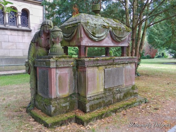 „Der 1813 im Bereich der ehemaligen Pforten-weingärten eröffnete Friedhof lag vor den Toren der Stadt und war im Gegensatz zu den innerstädtischen Kirchfriedhöfen auf Flächenerweite-rung ausgelegt. Als modern galt damals eine verbindliche, den Bestattungen zugrunde liegende Anordnung, die vermutlich auch hier durch ein gliederndes Wegenetz gegeben war.