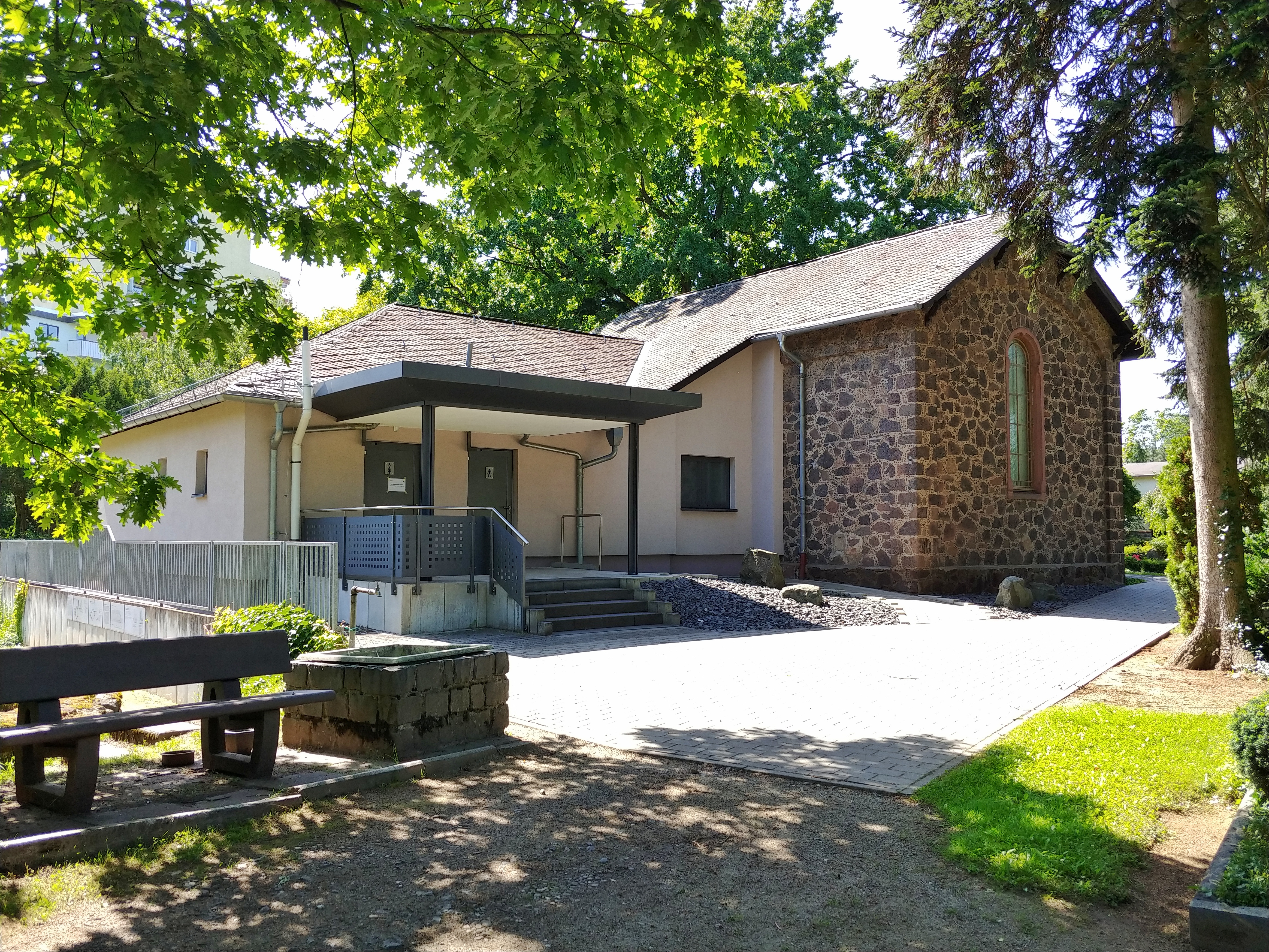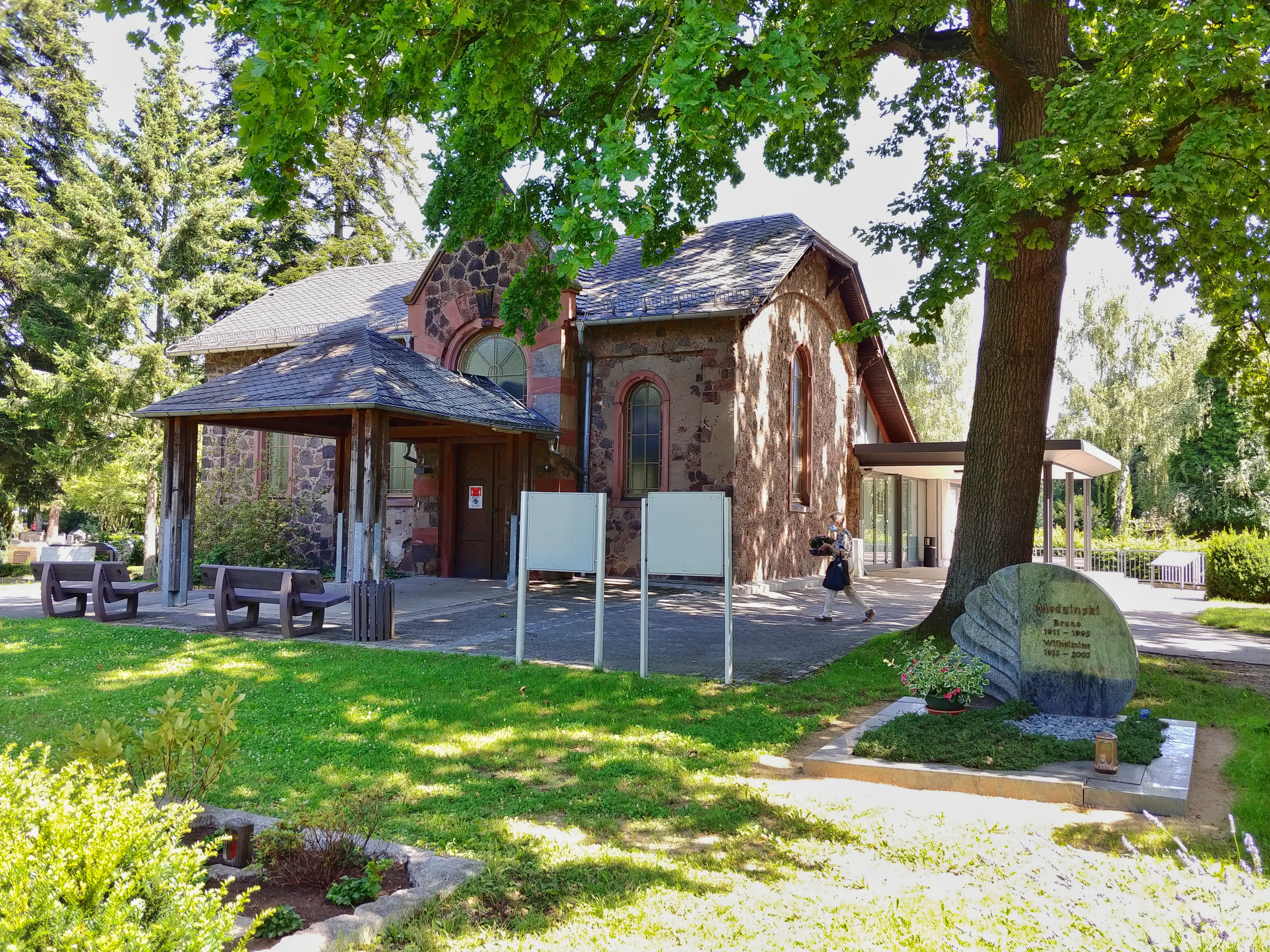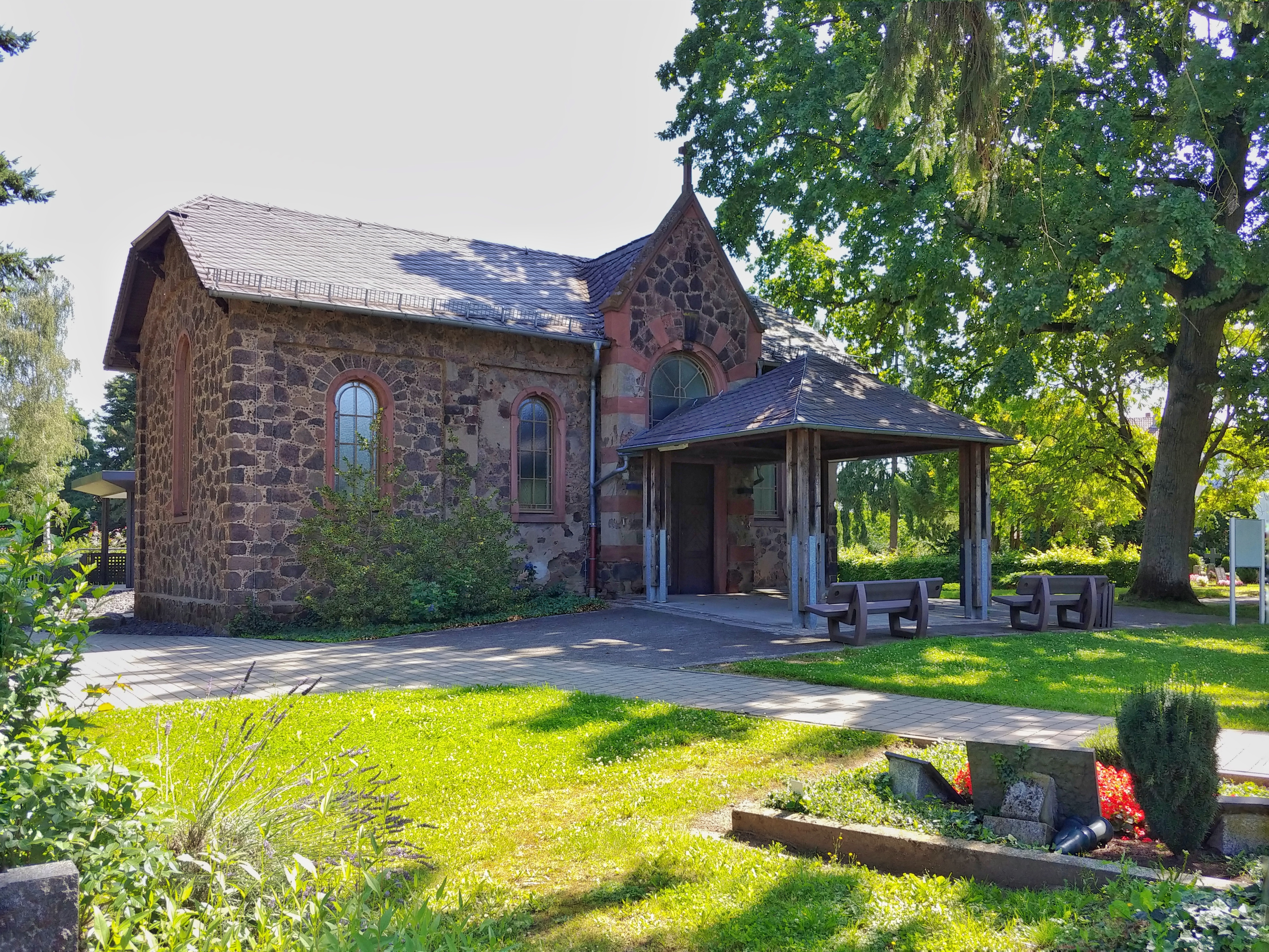 Im Bereich Vogelsberstraße/Kapellenweg ist dem Friedhof eine Grünanlage vorgelagert in der neben dem alten Friedhofseingang eine Kapelle steht.
