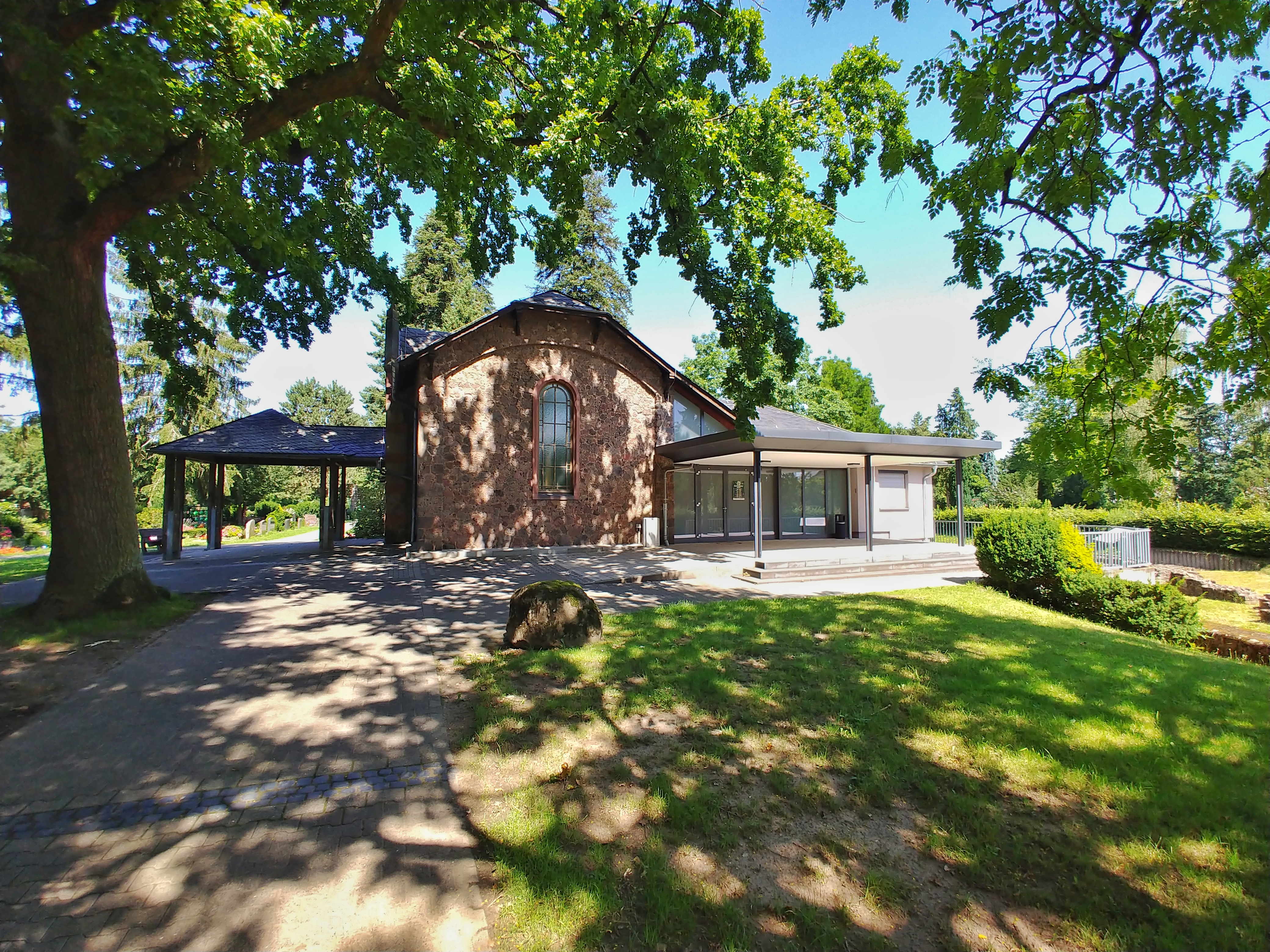 Im 1846 eröffneten Friedhofsteil befindet sich die denkmalgeschützte Leichenhalle von 1903, ein eingeschossiger Klinkerbau mit neuklassizistischen Stilelementen.