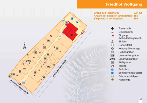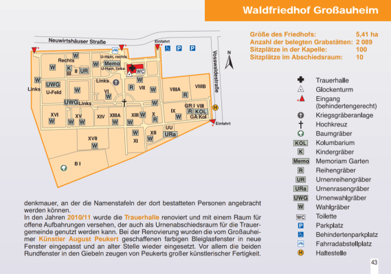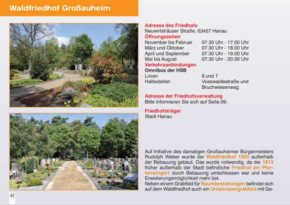 Der Waldfriedhof Großauheim liegt in dem Bereich Depotstraße/Neuwirtshäuser Straße in Richtung Wolfgang.