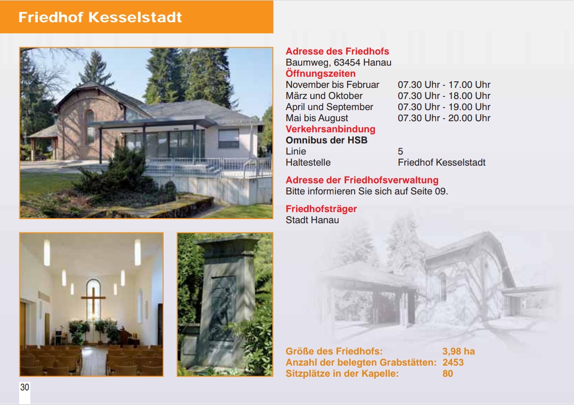 Die Stadt Seligenstadt unterhält in der Kernstadt und ihren Stadtteilen vier Friedhöfe mit einer Fläche von etwa