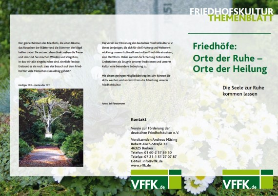 Der Verein zur Förderung der deutschen Friedhofskultur e. V. gibt Themenblätter heraus, die sich in kurzer prägnanter Weise mit Fragen der Erinnerungskultur bzw. Bestattungs- und Friedhofskultur befassen.